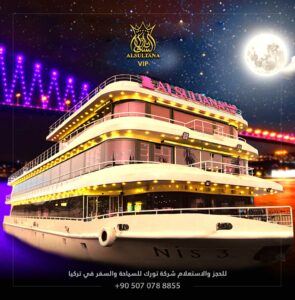 في الحقيقة تعتبر ALSULTANA SHIP سفينة السلطانة التركية والخليجية واحدة من أجمل السفن الموجودة في دولة تركيا حيث انه تم أنشاء هذه السفينة حديثاً في 5 نوفمبر عام 2021 واستطاعت هذه السفينة الرائعة أن تجذب إليها الكثير من السياح لقضاء أجمل الأوقات عليها والاستمتاع بمشاهدة المناظر والمعالم السياحية الموجودة على ضفاف مضيق البسفور في مدينة اسطنبول والذي من خلاله يمكن لسفينة السلطانة عمل جولة بوسفور مسائية سياحية كاملة.
