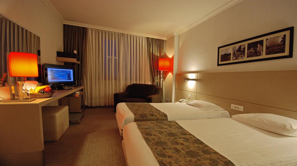 تحتوي جميع غرف الضيوف على بياضات أسرّة بيضاء على الأسرّة ووسائد فخمة على الأريكة. تحتوي جميع غرف فندق Eresin Hotels Taxim Premier على ميني بار ومرافق صنع الشاي والقهوة.