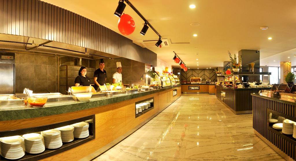 يقدم المطعم الموجود في الموقع المأكولات العالمية وبوفيهات عشاء تركية، ويمكن للضيوف الاستمتاع بالمشروبات المنعشة في بار الشاطئ الموجود في أوبا ستار.
