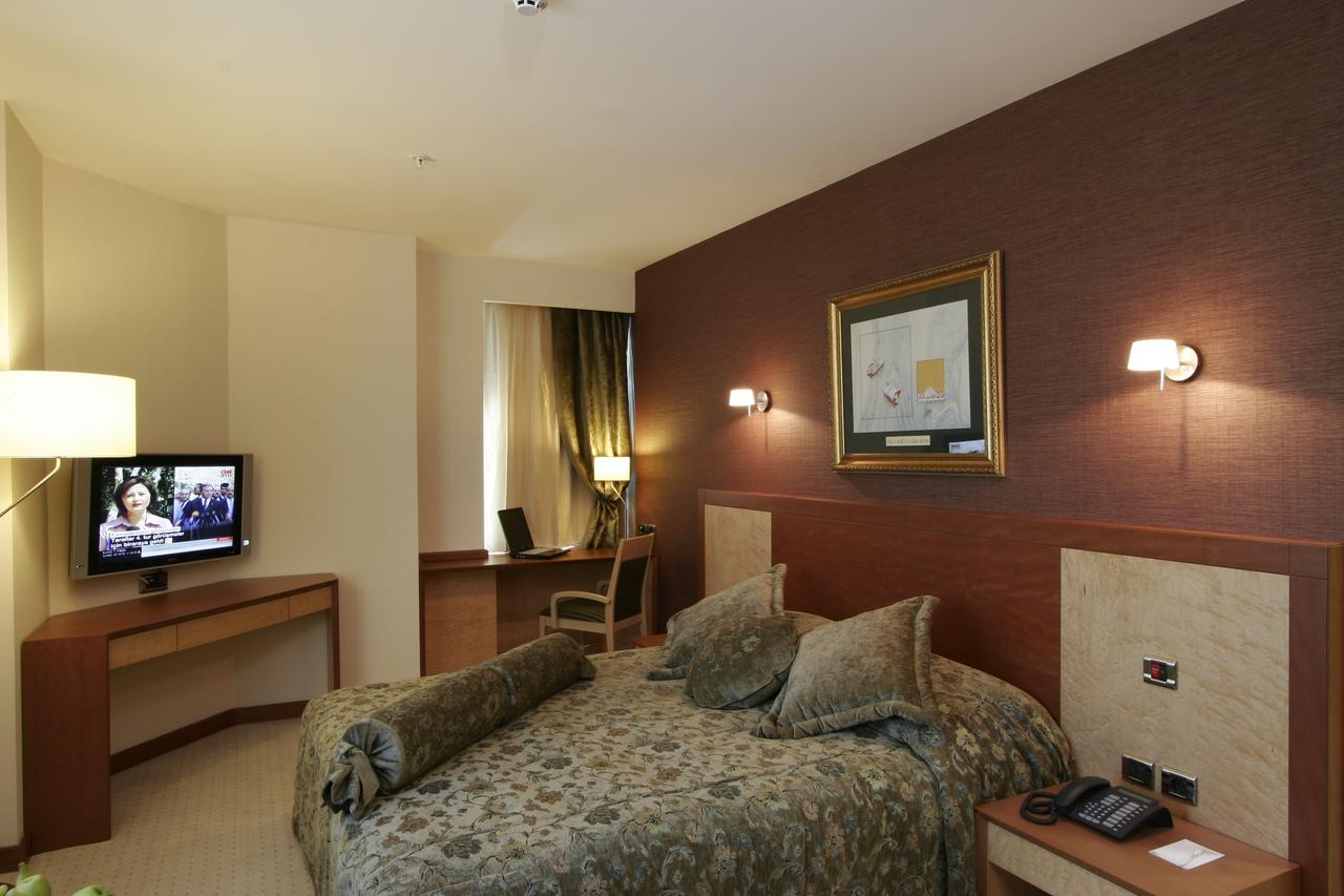 تقع غرف الضيوف في برج باي أوتيل ذو الجدران الزجاجية، وتوفر إطلالة بانورامية على المدينة، وتُعد أجهزة التلفزيون بشاشات مسطحة والقنوات الفضائية من بين بعض وسائل الراحة العصرية في الغرفة.